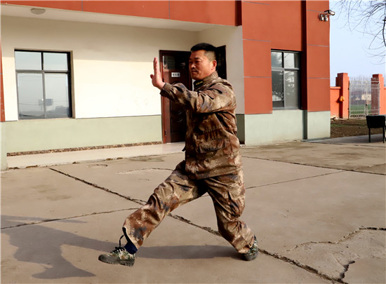 “立正!向右看齊!”3月4日,在鄲城縣民兵訓(xùn)練基地,2021年春季征兵預(yù)定新兵訓(xùn)練場(chǎng)上,53歲的訓(xùn)練班長(zhǎng)王成華從骨子里喊出這句口號(hào)、集結(jié)準(zhǔn)新兵隊(duì)伍。從1992年“鐵軍”127師退伍進(jìn)入人武部至今,這句口號(hào)他已經(jīng)喊了29年,始終底氣十足。同事和準(zhǔn)新兵們尊稱他為“班長(zhǎng)王”。