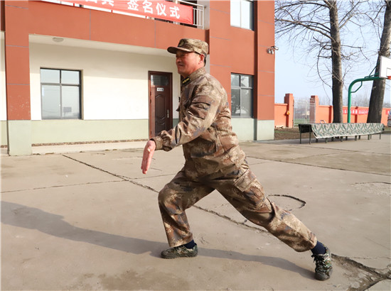同時(shí),王成華也很幽默,深受準(zhǔn)新兵的喜愛,“在這個(gè)隊(duì)伍里,說不定你的爸爸當(dāng)年當(dāng)兵時(shí)就是我訓(xùn)練的。起初,大家叫我‘王班長(zhǎng)’,后來叫我‘老班長(zhǎng)’,現(xiàn)在叫我‘班長(zhǎng)王’,是不是覺得我太老了?來,我給大家打一套軍體拳!不服的上來試試。”