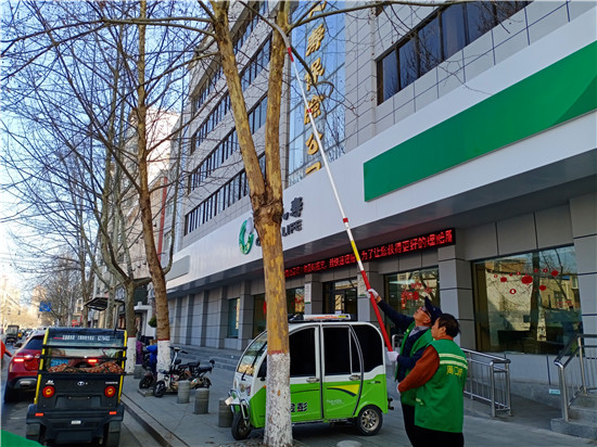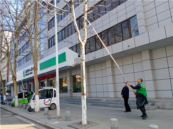 3月4日下午,在中心城區(qū)人民路上,園林工人正在對(duì)道路邊的綠化樹(shù)進(jìn)行修剪,讓樹(shù)木保持良好的形狀和長(zhǎng)勢(shì)。周口日?qǐng)?bào)·周道客戶端記者 張洪濤 攝