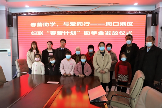 3月4日下午,周口港區(qū)婦聯(lián)舉辦“春蕾計劃”助學金發(fā)放儀式。港區(qū)黨委委員張東立出席儀式并講話。港區(qū)婦聯(lián)、港區(qū)文教衛(wèi)計生科技辦和相關學校負責同志參加助學金發(fā)放儀式。