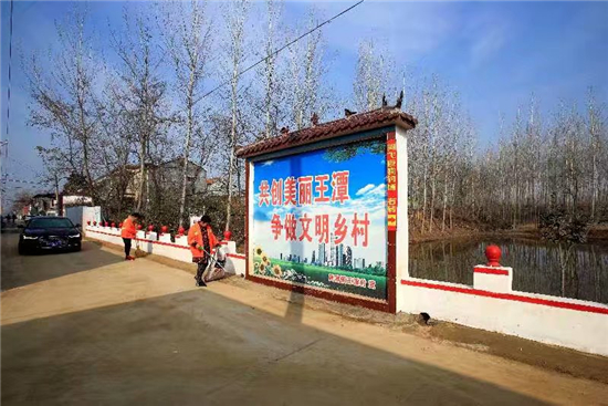 綠樹環(huán)抱的村落,四通八達(dá)的水泥路,溫馨雅致的文化長廊,花木掩映的庭院……初春時(shí)節(jié),位于周項(xiàng)路一側(cè)的商水縣黃寨鎮(zhèn)王潭行政村處處美麗如畫。
