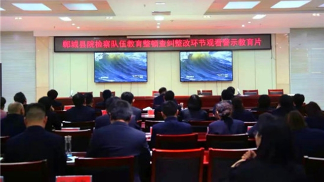 為深入推進(jìn)政法隊伍教育整頓工作,5月19日下午,淮陽區(qū)人民檢察院召開教育整頓查糾整改環(huán)節(jié)警示教育大會,組織檢察干警觀看《賈小剛案警示錄》。