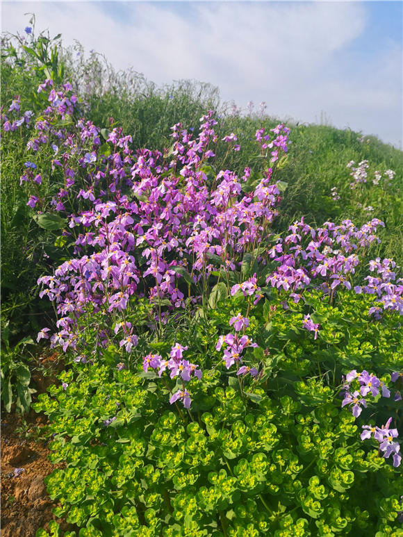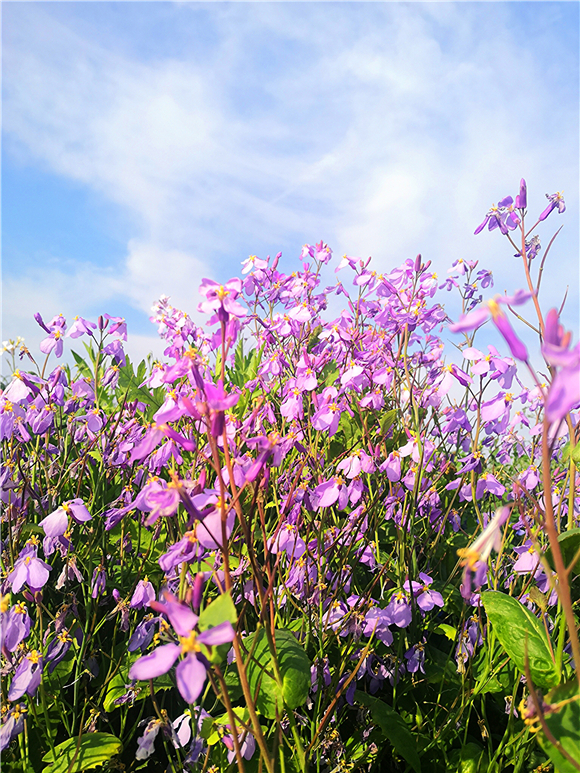 據(jù)了解,諸葛菜也叫二月蘭,因早春農(nóng)歷二月前后開花,所以叫二月蘭,花開溫柔,娟秀,清雅,很是招人喜歡。而且具有較強(qiáng)的耐寒性與適應(yīng)性,自繁能力比較強(qiáng),一次播種能年年自成群落,能夠有效控制裸地?fù)P塵起沙、抑制雜草生長(zhǎng)。諸葛菜花花期相當(dāng)長(zhǎng),能夠從早春時(shí)節(jié),一直開到暮春初夏間,當(dāng)百花盛開時(shí),它依然露著笑臉。因此著實(shí)是春天里的“早到遲退”之花。③5