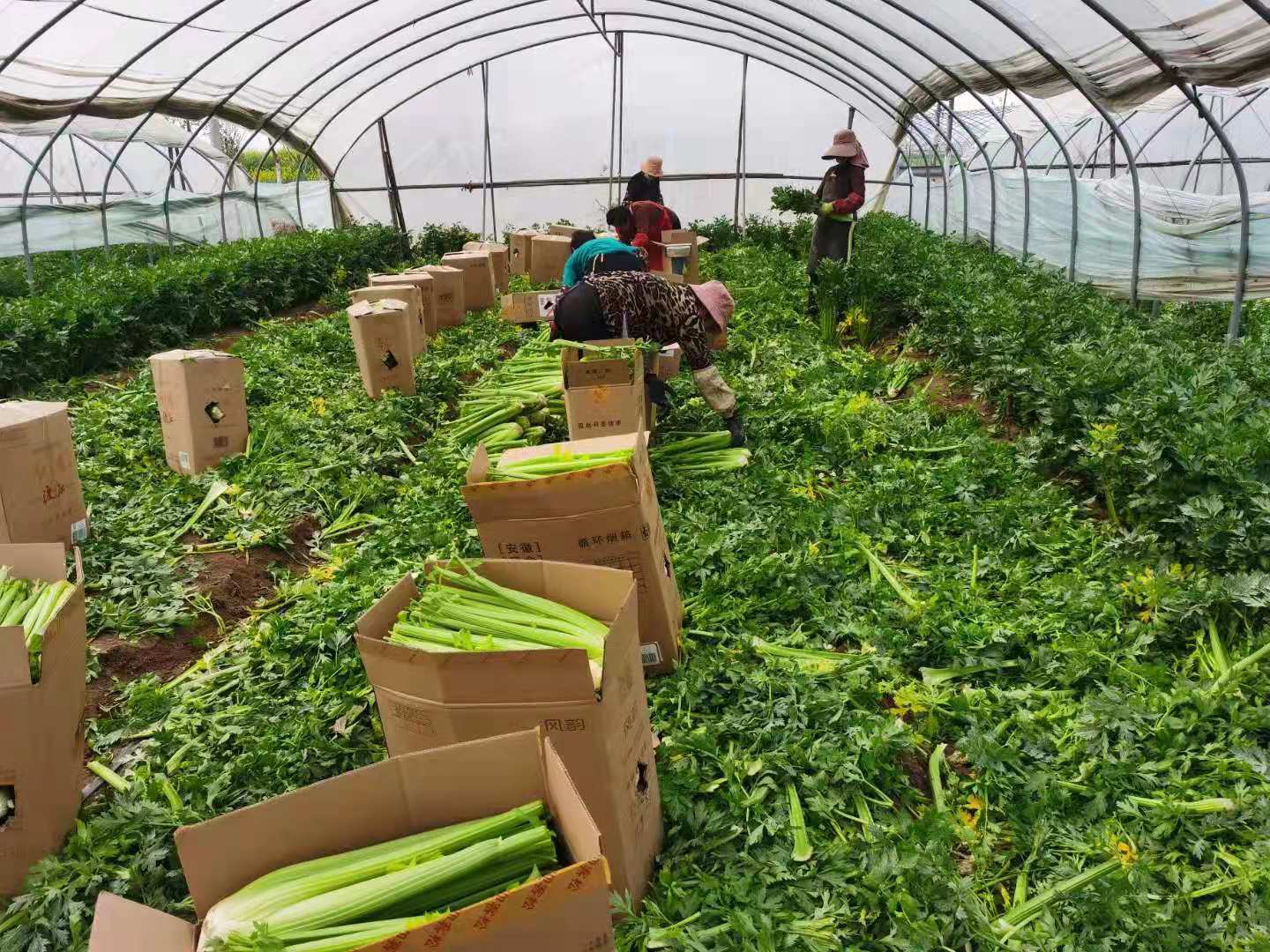 走進(jìn)萬(wàn)畝芹菜種植基地蔬菜溫棚,一股傘形科植物特有的芳香充滿鼻腔。抬眼一瞅,裝箱好的芹菜整齊碼放成垛,溫棚深處,還有大片未收割的芹菜,挺直鮮嫩,綠意蔥蘢。大棚里菜農(nóng)們收割、打包、貼二維碼一氣呵成,道路兩旁十幾名從全國(guó)各地趕來(lái)的收購(gòu)商從菜農(nóng)手中接過(guò)包裹急忙裝車。
