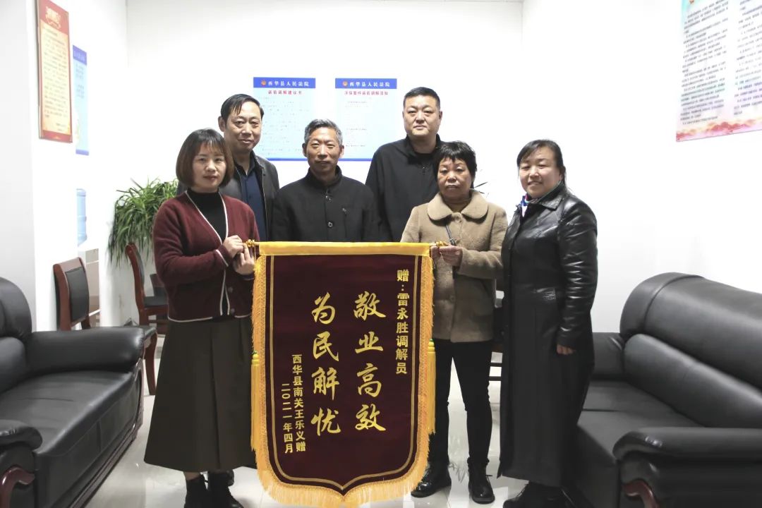 “要不是雷調(diào)解員出面調(diào)解,我的錢還不知道什么時候能要回來呢,這可幫了我們大忙……”4月13日上午,當(dāng)事人王某將一面印有“敬業(yè)高效 為民解憂”的錦旗送至西華縣法院政協(xié)委員調(diào)解員雷永勝手中,對其耐心高效的調(diào)解工作表示衷心感謝。