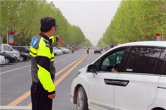 4月16日,鄲城一高舉行第12屆18歲成人儀式暨奠基高考決勝2022誓師大會。鄲城縣公安局副局長朱衛(wèi)兵率領(lǐng)交警鐵騎隊兵分4路,從早上7時至上午11時在學校周圍維護交通秩序,確保數(shù)千名家長的車輛有序停放,疏堵保暢。