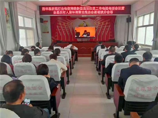 4月16日,西華縣防范打擊電信網(wǎng)絡(luò)新型違法犯罪工作電視電話會(huì)議暨全縣農(nóng)村人居環(huán)境整治推進(jìn)會(huì)以視頻會(huì)議形式召開(kāi)。聶堆鎮(zhèn)在鎮(zhèn)政府三樓會(huì)議室設(shè)置分會(huì)場(chǎng),組織鎮(zhèn)政府全體干部、派出所所長(zhǎng)、各村支部書(shū)記參加會(huì)議。