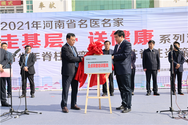 4月18日,2021年河南省名醫(yī)名家“走基層?送健康”系列活動——走進(jìn)鄲城暨在校青少年脊柱側(cè)彎和強(qiáng)直性脊柱炎篩查義診?志愿者服務(wù)行動在鄲城縣第二實(shí)驗(yàn)中學(xué)啟動。