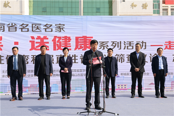 河南省衛(wèi)健委副主任劉延軍,光明日報社河南站站長王勝昔,省衛(wèi)健委宣傳處處長楊力勇,省醫(yī)學(xué)會副會長兼秘書長王偉,省人民醫(yī)院副院長張連仲,團(tuán)河南省委學(xué)校部副部長張艷斌,省骨科學(xué)會主任委員、省人民醫(yī)院脊柱脊髓外科主任高延征,周口市人大常委會副主任、鄲城縣委書記羅文閣,周口市副市長秦勝軍,市衛(wèi)健委主任金玉貞,鄲城縣副縣長張凱,縣衛(wèi)健委主任付登霄,縣人民醫(yī)院院長于健,縣教體局局長羅明黨等出席啟動儀式。儀式由鄲城縣人民政府縣長李全林主持。