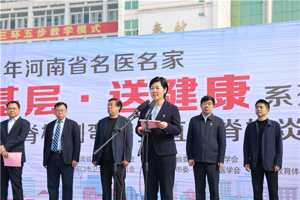 羅文閣致歡迎詞。她說,只有全民健康才有全面小康。今天,河南省在校青少年脊柱側(cè)彎和強(qiáng)直性脊柱炎篩查義診活動走進(jìn)鄲城,對鄲城孩子們的健康成長是件好事、實(shí)事,我們將全力以赴,做好配合,爭取讓項(xiàng)目惠及更多患者,同時希望全縣廣大醫(yī)護(hù)工作者以這次活動為契機(jī),珍惜難得的學(xué)習(xí)機(jī)會,從名醫(yī)名家身上,學(xué)習(xí)出類拔萃的醫(yī)療技術(shù)、德藝雙馨的大醫(yī)情懷、心系群眾的高尚情操、不辭勞苦的敬業(yè)精神,不忘初心、牢記使命,勤學(xué)苦練、提升本領(lǐng),為鄲城創(chuàng)建國家健康縣城、做好鞏固拓展脫貧攻堅成果同鄉(xiāng)村振興有效銜接作出更大貢獻(xiàn)。