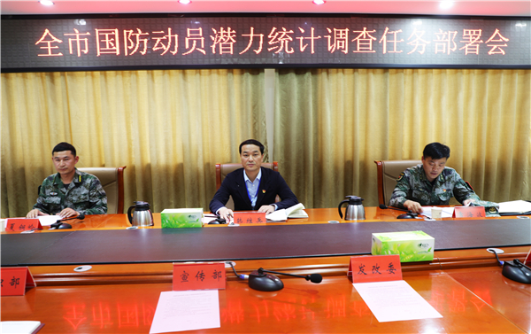 為扎實(shí)開(kāi)展國(guó)防動(dòng)員潛力統(tǒng)計(jì)工作,全面掌握國(guó)防動(dòng)員潛力情況,提高國(guó)防動(dòng)員能力,扎實(shí)做好軍事斗爭(zhēng)準(zhǔn)備工作。4月15日下午,項(xiàng)城市召開(kāi)2021年國(guó)防動(dòng)員潛力統(tǒng)計(jì)調(diào)查任務(wù)部署會(huì)。參加會(huì)議的有該市國(guó)防動(dòng)員潛力調(diào)查領(lǐng)導(dǎo)小組副組長(zhǎng)、政務(wù)服務(wù)和大數(shù)據(jù)管理局局長(zhǎng)韓維兵,市人武部副部長(zhǎng)常海波,該市國(guó)防動(dòng)員潛力調(diào)查領(lǐng)導(dǎo)小組成員單位主要領(lǐng)導(dǎo)等50余人。