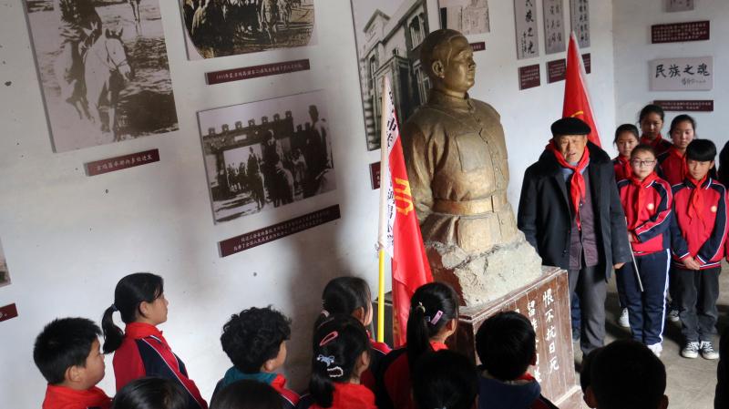 何國(guó)志老人在為孩子們講解吉鴻昌將軍身前事跡。