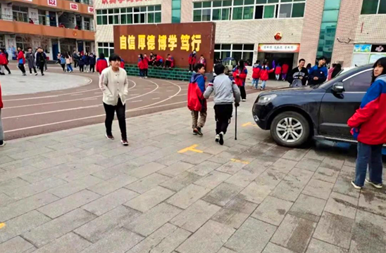高一段學(xué)生郭康樂,行動不便,生活中障礙重重,在入校的那一天,感到有些無助。李澳杰與他素不相識,當(dāng)看到郭康樂的狀況時,主動了解情況,給予了他無私而又及時的幫助,這一幫就是近一年。
