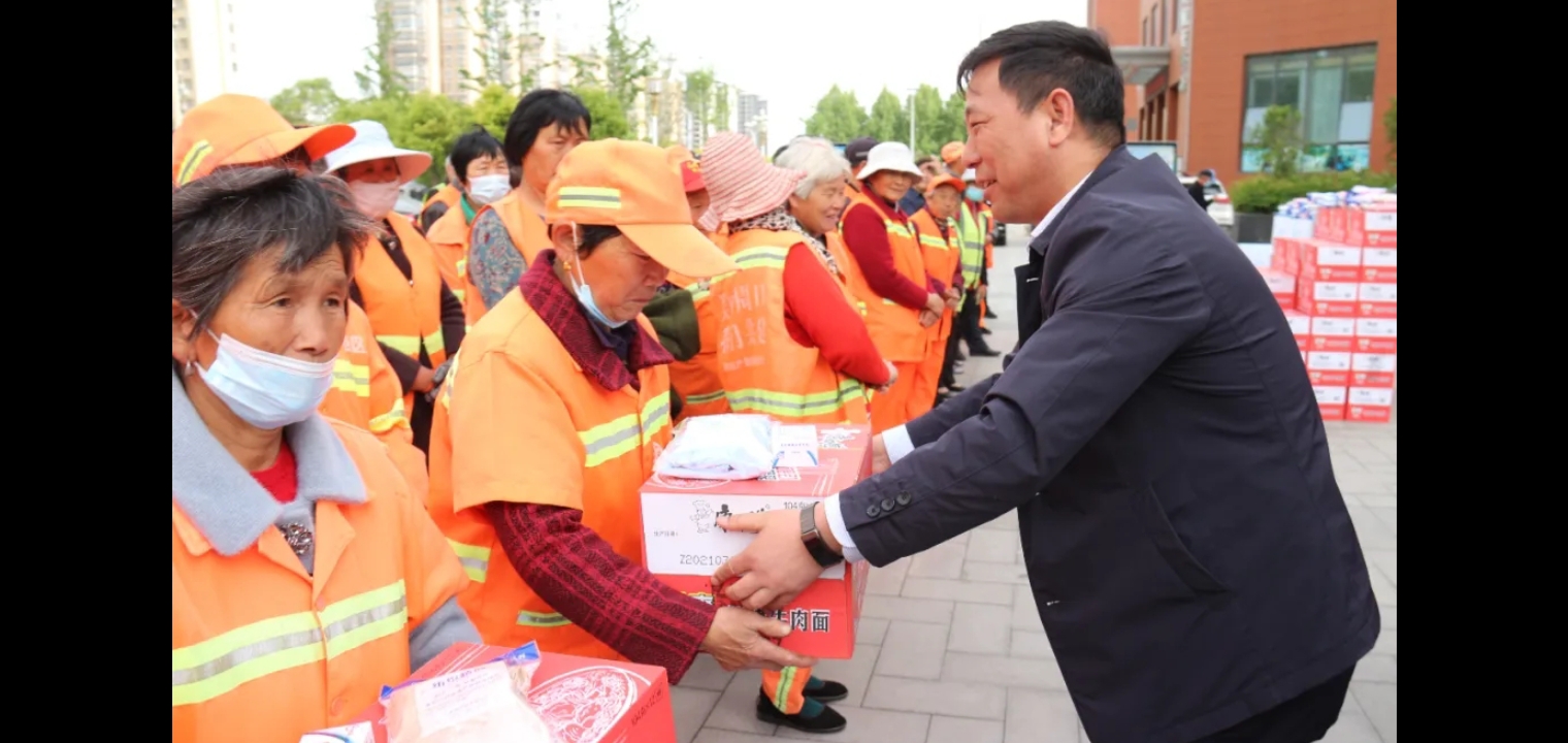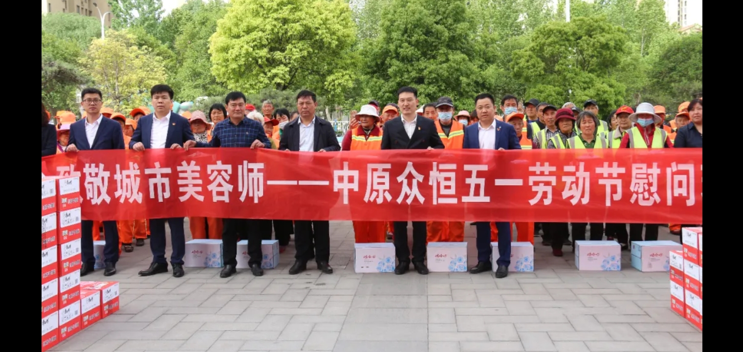 中原眾恒集團領(lǐng)導(dǎo)為環(huán)衛(wèi)工人發(fā)放慰問品