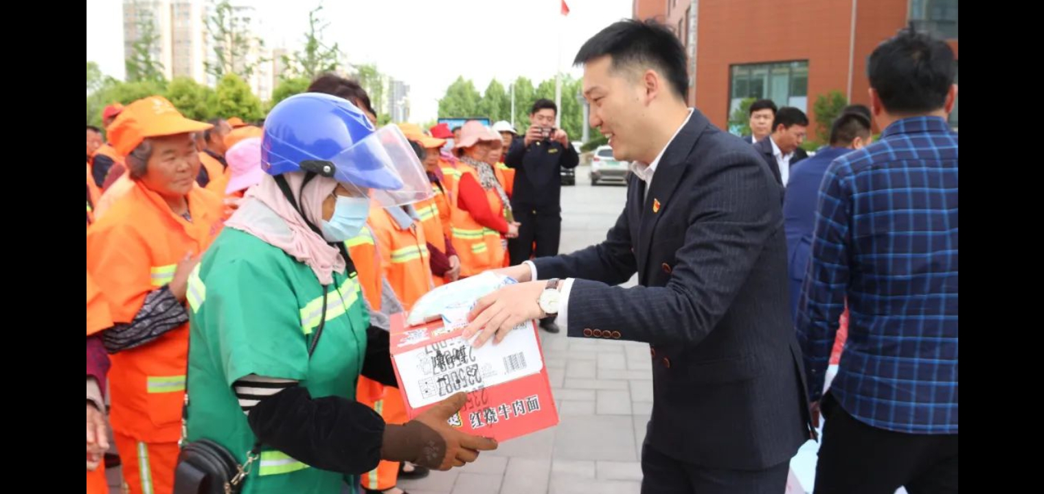 為表達(dá)對一線環(huán)衛(wèi)工人的關(guān)懷,致敬城市美容師,4月29日,中原眾恒集團在道琚酒店組織開展五一勞動節(jié)慰問環(huán)衛(wèi)工人公益活動。市城鄉(xiāng)一體化示范區(qū)綜合執(zhí)法中心副主任張英、王東方,中原眾恒集團董事長王文濤,副總經(jīng)理謝華、張輝,道琚酒店總經(jīng)理李陽及示范區(qū)100余名環(huán)衛(wèi)工人參加活動。