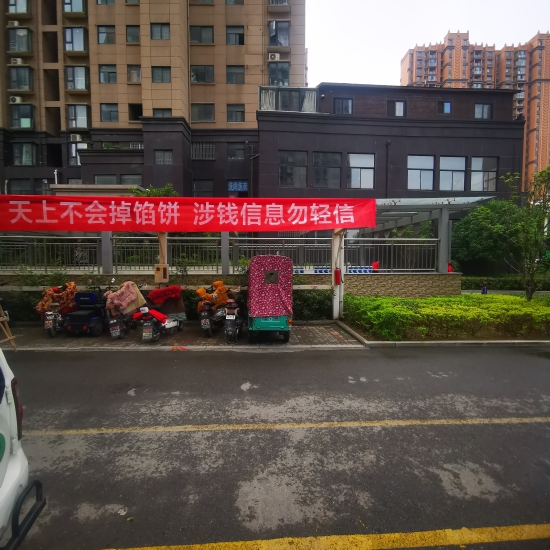 據(jù)介紹,“金色東方”小區(qū)建成于2014年,占地120畝,居住人口2516戶,共8176人。廣場是小區(qū)里最熱鬧的地方。這里不僅擺放著詐騙案例展板,而且LED大屏上反復(fù)播放“局長說反詐”視頻,時(shí)刻提醒居民繃緊防詐弦。通過張貼標(biāo)語、擺放展板、播放視頻等形式,“金色東方”小區(qū)營造了全方位反詐的濃厚氛圍,基本達(dá)到“處處有提醒”的效果。據(jù)悉,2月份以來,該小區(qū)未發(fā)生一起電信網(wǎng)絡(luò)詐騙案件。