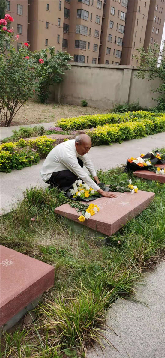 一束束潔白的花朵,寄托著對烈士的哀思,一滴滴滾燙的熱淚,表達著對親人的牽掛。5月12日,西華縣退役軍人事務局、東王營鄉(xiāng)有關人員和薛景洪一起前往開封市尉氏縣烈士陵園悼念薛子明烈士。在薛子明烈士墓前,薛景洪老人眼里噙著熱淚哽咽著說:“薛老先生,薛莊村親人看您來了,我們沒有忘記您,我們一直在尋找您。”