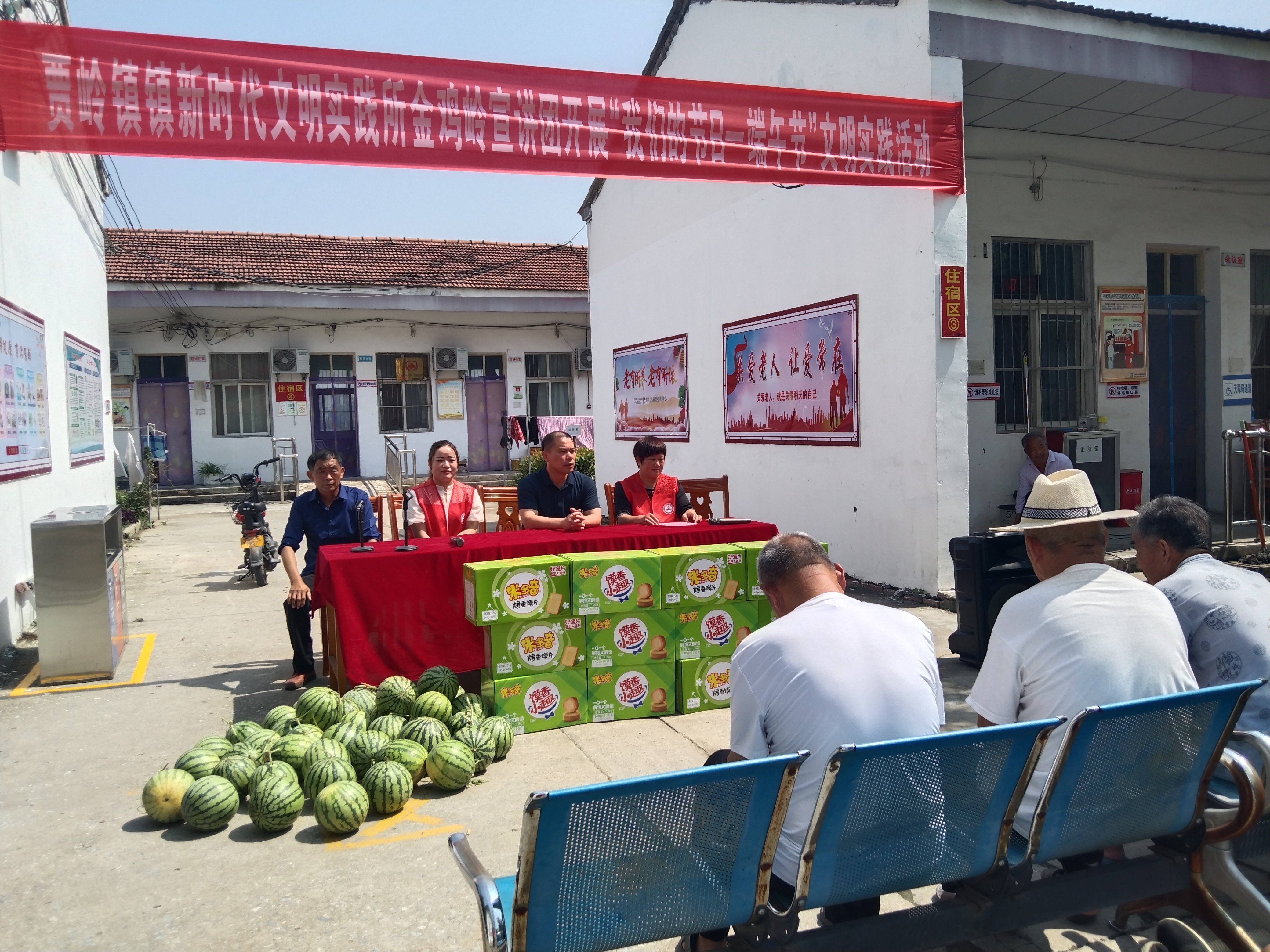 端午節(jié)將至,6月20日上午,項城市賈嶺鎮(zhèn)新時代文明實踐所金雞嶺宣講團(tuán)志愿者走進(jìn)該鎮(zhèn)敬老院,為老人們送去粽子、西瓜、糕點等愛心物品,并為老人們表演大鼓書《百善孝為先》等文藝節(jié)目,以此表達(dá)對老年人的關(guān)愛之情。