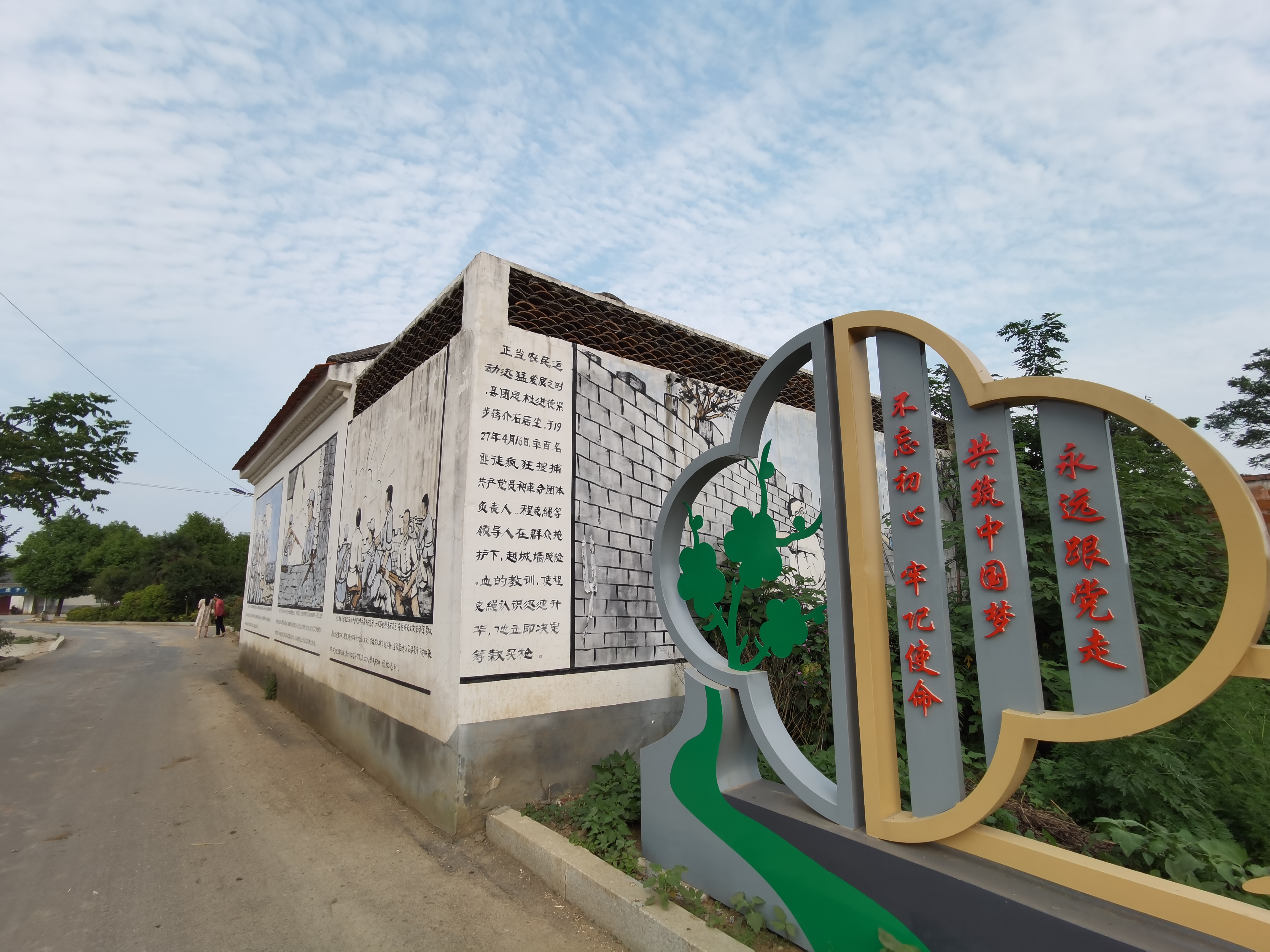 時空轉換。程克繩等革命先烈戰(zhàn)斗過的紅色熱土,已經發(fā)生了翻天覆地的變化。行走在程坡村,只見硬化過的村道平坦、干凈,道路兩邊綠樹成蔭、鮮花綻放,農房整修一新,墻上彩繪再現(xiàn)了程克繩光輝事跡的故事場景,村里三三兩兩的老人,聚在樹蔭下拉家常……