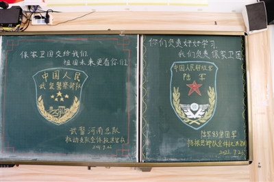 當(dāng)抗洪官兵結(jié)束任務(wù)離開時,他們分別在學(xué)校留下了“最美黑板報”。