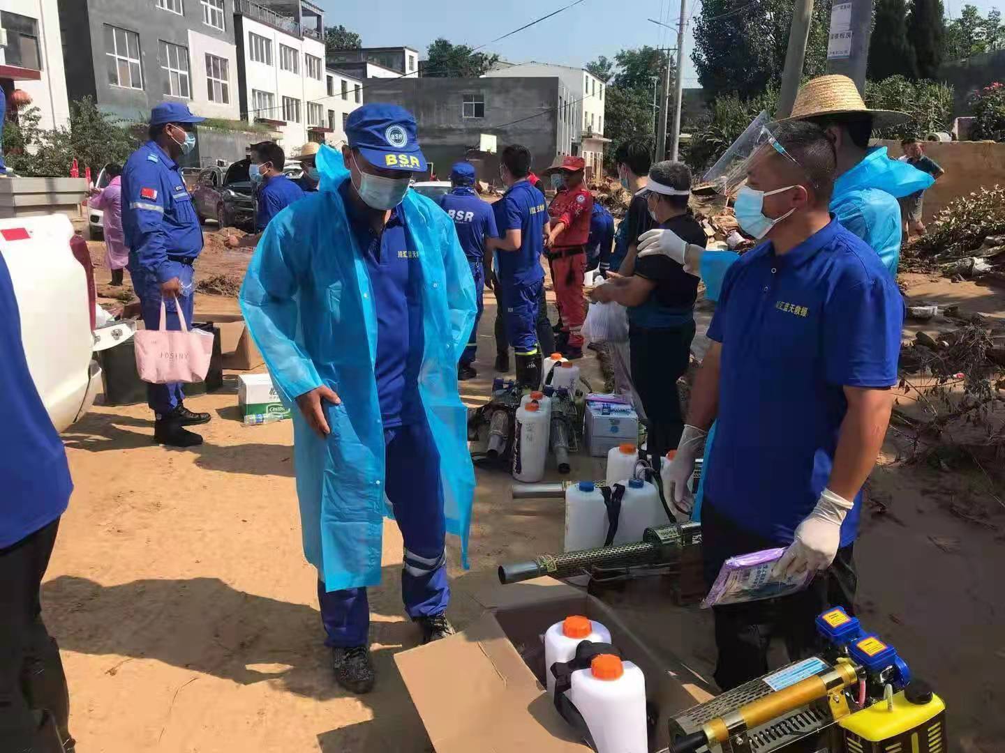 7月29日上午10時(shí),在隊(duì)長肖永德的帶領(lǐng)下,周口川匯藍(lán)天救援隊(duì)30名隊(duì)員趕赴鄭州滎陽受災(zāi)較重的賈峪鎮(zhèn)賈峪村進(jìn)行災(zāi)后消殺工作。
