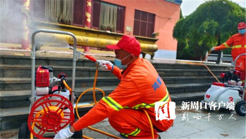 在女媧景區(qū),只見老關(guān)和其他3名消殺人員發(fā)動機器、拉出噴管、手提噴槍,一邊前進,一邊揮動,白色水霧隨之噴涌而出,所到之處細(xì)菌病毒“無處遁形”。大家齊心協(xié)力,很快就把景區(qū)的角角落落消殺個遍。