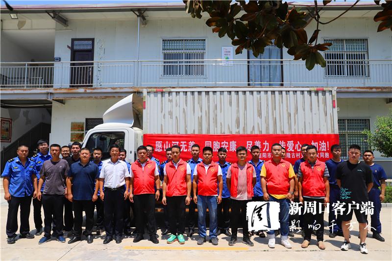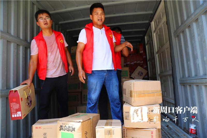 當(dāng)天中午,掛著印有“昨天大家助我脫貧,今天我為救災(zāi)出力!”條幅的防汛救災(zāi)物資運(yùn)輸車抵達(dá)周口港區(qū)。“要不是前兩天防御臺(tái)風(fēng)‘煙花’,我們?cè)缇蛠?lái)了。”隆古村黨支部書(shū)記段長(zhǎng)春一下車就連忙慰問(wèn)眾人。一同前往的還有6位年輕力壯的志愿者,他們不辭勞苦,和港區(qū)消防、城管人員一起頂著烈日,用了半個(gè)多小時(shí)將滿車物資搬運(yùn)到位。