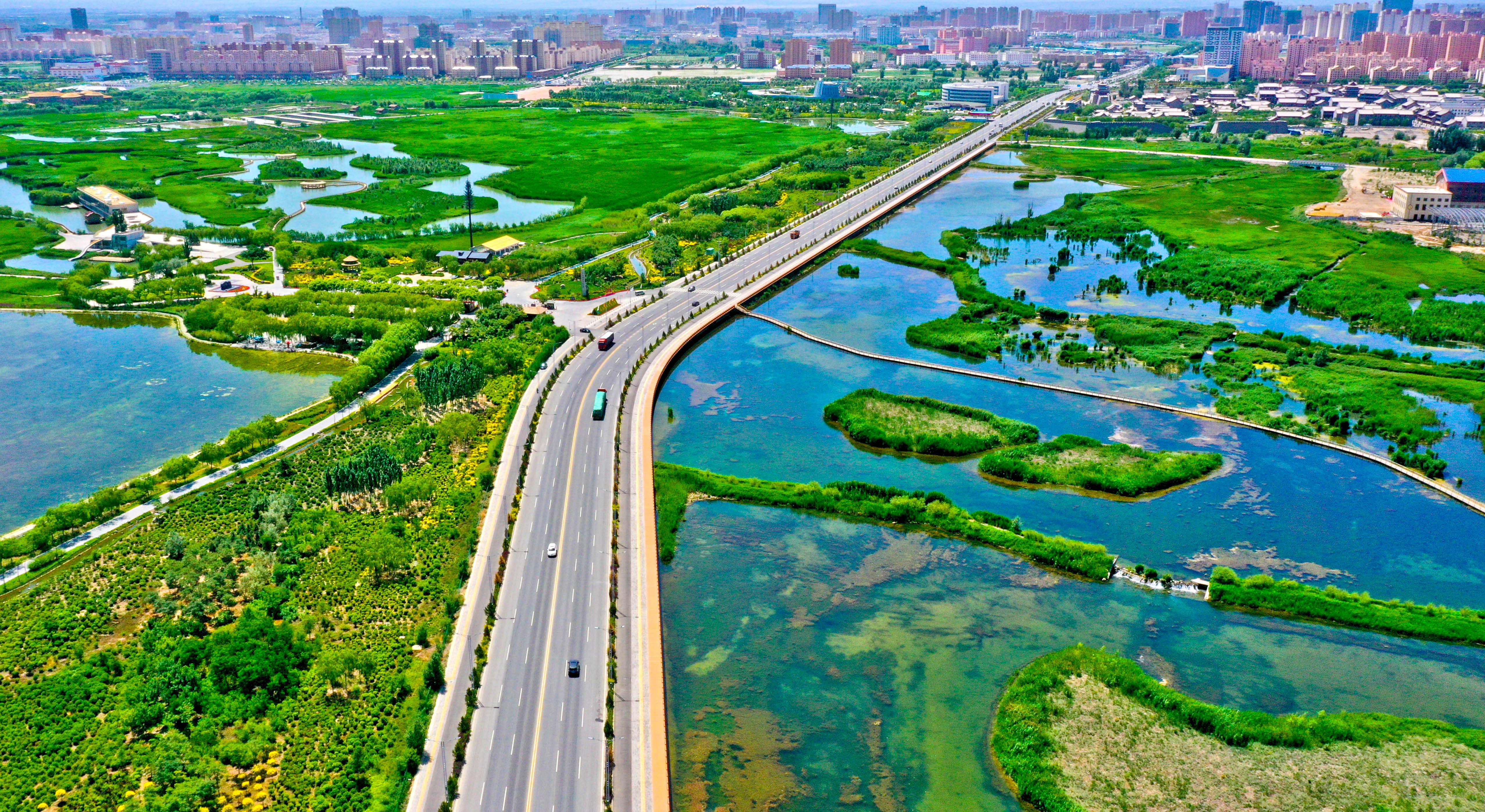 圖2:張掖市甘州區(qū)濱河新區(qū)。 張掖日報社 王將 攝