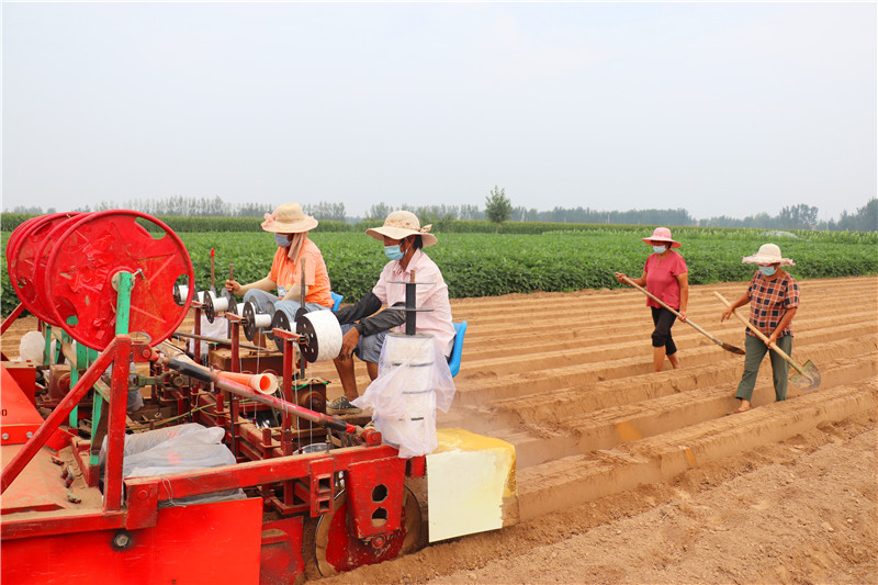 菜苗補栽全面展開。在韭園鎮(zhèn)蔬菜種植大戶李興華的胡蘿卜基地,2臺進口大型播種機、起壟機來來回回,拉滴灌管的農民工滿頭大汗搶播搶種。截至目前,全縣設施蔬菜改種補種2600余畝,修復大棚982座,6個重點育苗基地已恢復育苗能力,近期已育苗800萬株。