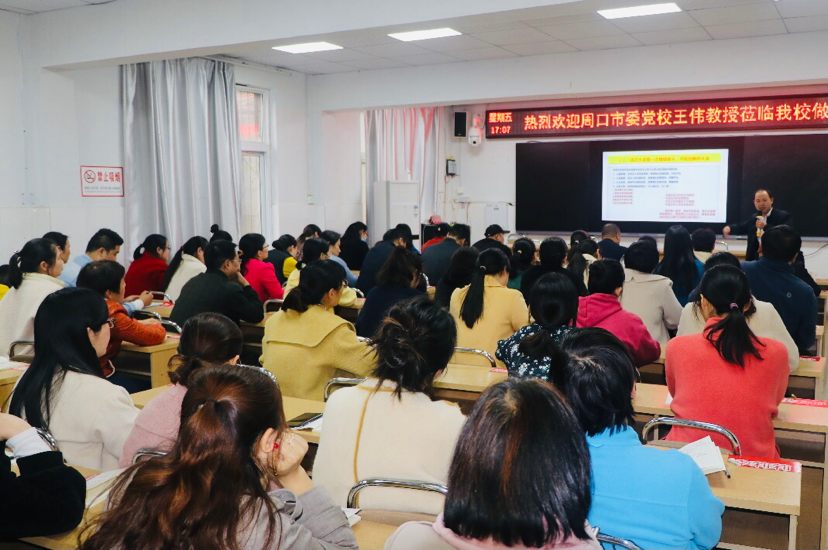 宣講會(huì)上,市委黨校宣講團(tuán)講師王偉以“深入學(xué)習(xí)貫徹市五次黨代會(huì)精神、開(kāi)啟全面建設(shè)社會(huì)主義現(xiàn)代化周口新征程”為主題,從充分認(rèn)識(shí)市五次黨代會(huì)的重大意義、準(zhǔn)確把握市五次黨代會(huì)的精神要義、全面落實(shí)市五次黨代會(huì)的目標(biāo)任務(wù)三方面,詳盡解讀了市五次黨代會(huì)主旨報(bào)告的精神實(shí)質(zhì)和豐富內(nèi)涵。整場(chǎng)報(bào)告脈絡(luò)清晰、論述深刻、內(nèi)容豐富,既有深入淺出的理論闡述,又有結(jié)合我市發(fā)展的實(shí)例分析,更有教育實(shí)踐層面的對(duì)策思考,為該校教職工深入、完整、系統(tǒng)地領(lǐng)會(huì)市五次黨代會(huì)精神,有力推進(jìn)貫徹落實(shí)黨代會(huì)精神提供了一把“金鑰匙”。