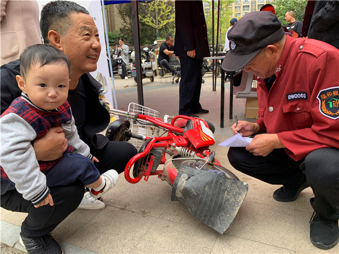 社區(qū)工作人員深入小區(qū)為居民電動(dòng)車(chē)上牌