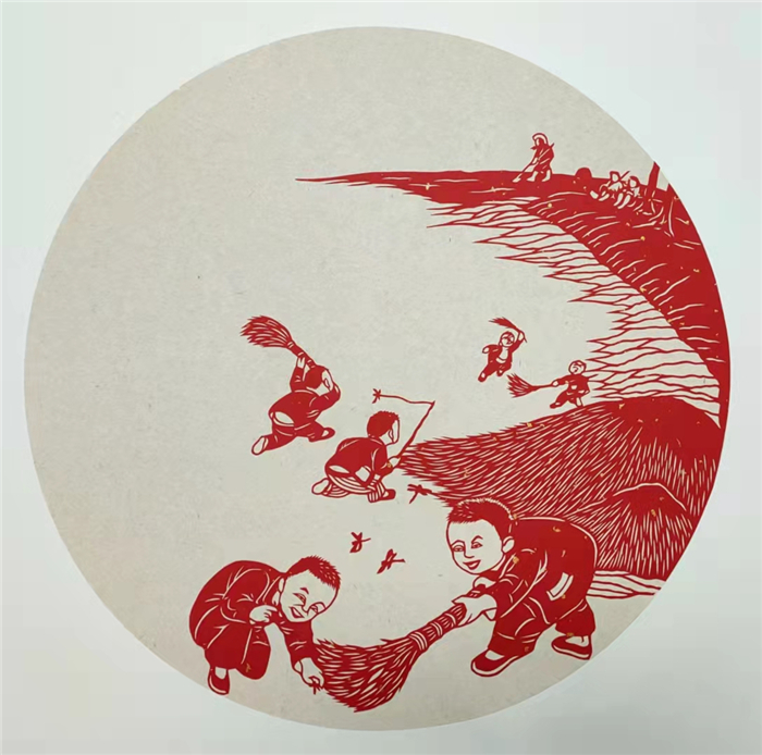 透過紅紙,有的孩童正神采飛揚地玩捉迷藏,有的正有模有樣地幫著長輩干農(nóng)活,還有的在乖巧地看長輩下象棋……為助力全國文明城市創(chuàng)建,表達對健康生活的熱愛,近日,周口剪紙非遺傳承人劉秀華創(chuàng)作出了一組“童趣”剪紙作品。