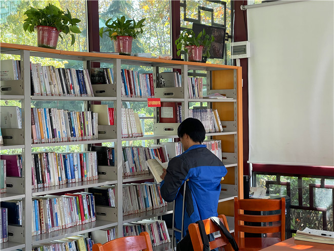 11月8日,記者在位于周口經(jīng)濟開發(fā)區(qū)人民廣場的城市書房看到,書架上的書籍擺放有序,書房環(huán)境干凈整潔,市民正在文明閱讀。