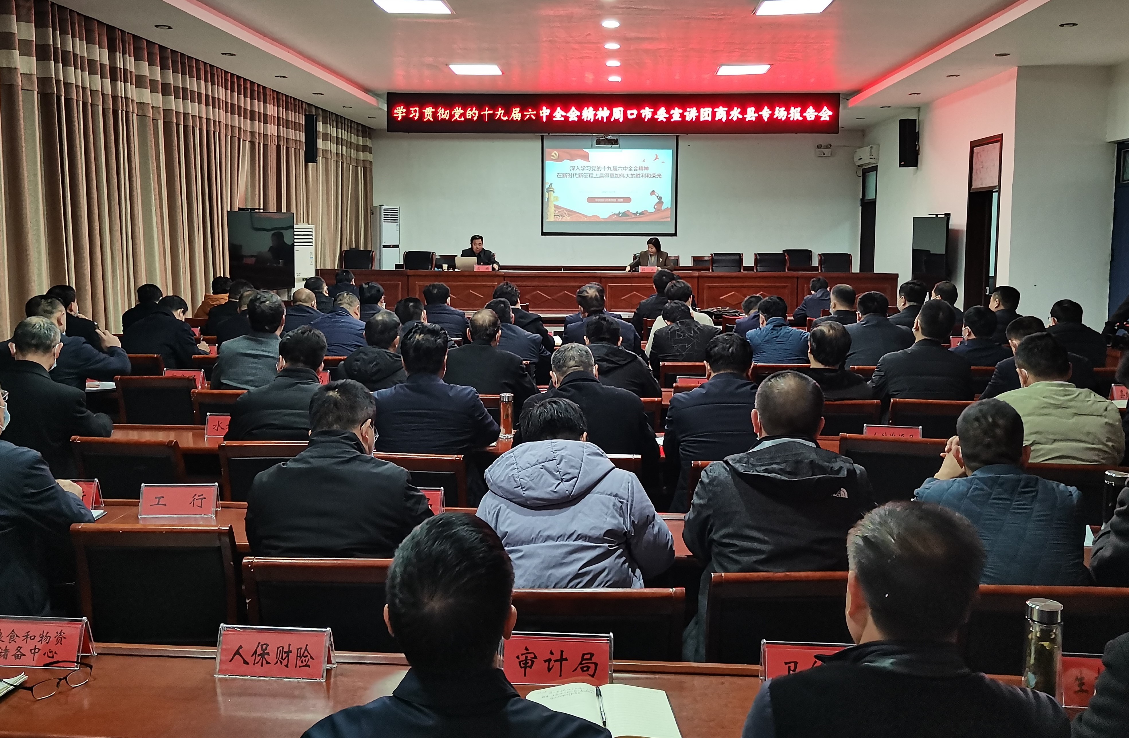 百年奮斗創(chuàng)輝煌,風(fēng)華正茂書華章。12月15日,學(xué)習(xí)貫徹黨的十九屆六中全會精神周口市委宣講團(tuán)商水縣專場報告會舉行,市委宣講團(tuán)成員高鵬作專題宣講報告,縣領(lǐng)導(dǎo)、鄉(xiāng)鎮(zhèn)辦事處和縣直單位主要負(fù)責(zé)人現(xiàn)場聆聽。