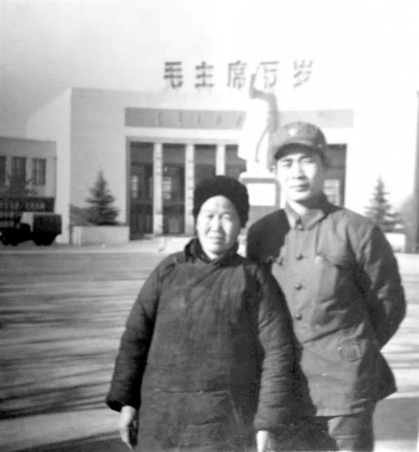 馮光明和養(yǎng)母楊素民有一張合影,背景是原河南省博物館。那是他參軍不久和養(yǎng)母唯一的合影。照片里,一身戎裝的他站在養(yǎng)母身后,正直偉岸。照片背后,寫有四個字“恩情如?!薄Ef社會,“娘”生活在社會底層,受人欺負(fù)?,F(xiàn)在,馮光明長大成人,他有能力保護(hù)“娘”,要用一生感恩“娘”!