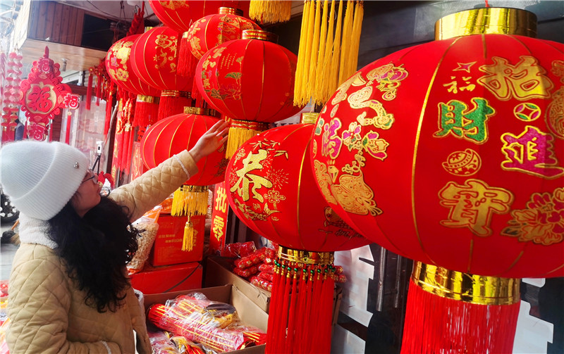 1月27日,市民在認(rèn)真挑選著新年的裝飾品。春節(jié)臨近,虎年生肖飾品、對(duì)聯(lián)、中國結(jié)、福字、大紅燈籠等“紅色年貨”火了年貨市場(chǎng)。據(jù)了解,各種寓意祥和的春聯(lián)、以老虎為主題的各種窗花、各種飾品最受市民歡迎。③10