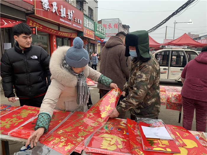 春節(jié)將至,不斷映入眼簾的喜慶“福”字映襯著摩肩接踵的人群。趕集時(shí),家家都要買幾張年畫、幾副春聯(lián),今年,以“虎”為主題的年畫春聯(lián)自然成了主角?!斑@個(gè)虎頭年畫今天已經(jīng)脫銷了,這個(gè)‘年年有余’的也喜慶。”攤主王大姐一邊幫顧客挑年畫一邊笑著說。年前,她早早囤好了近百種樣式的老虎年畫,現(xiàn)在看來還是不夠賣。除了過年必備的年畫春聯(lián),她還準(zhǔn)備了紅燈籠、紅燭等,也十分暢銷。