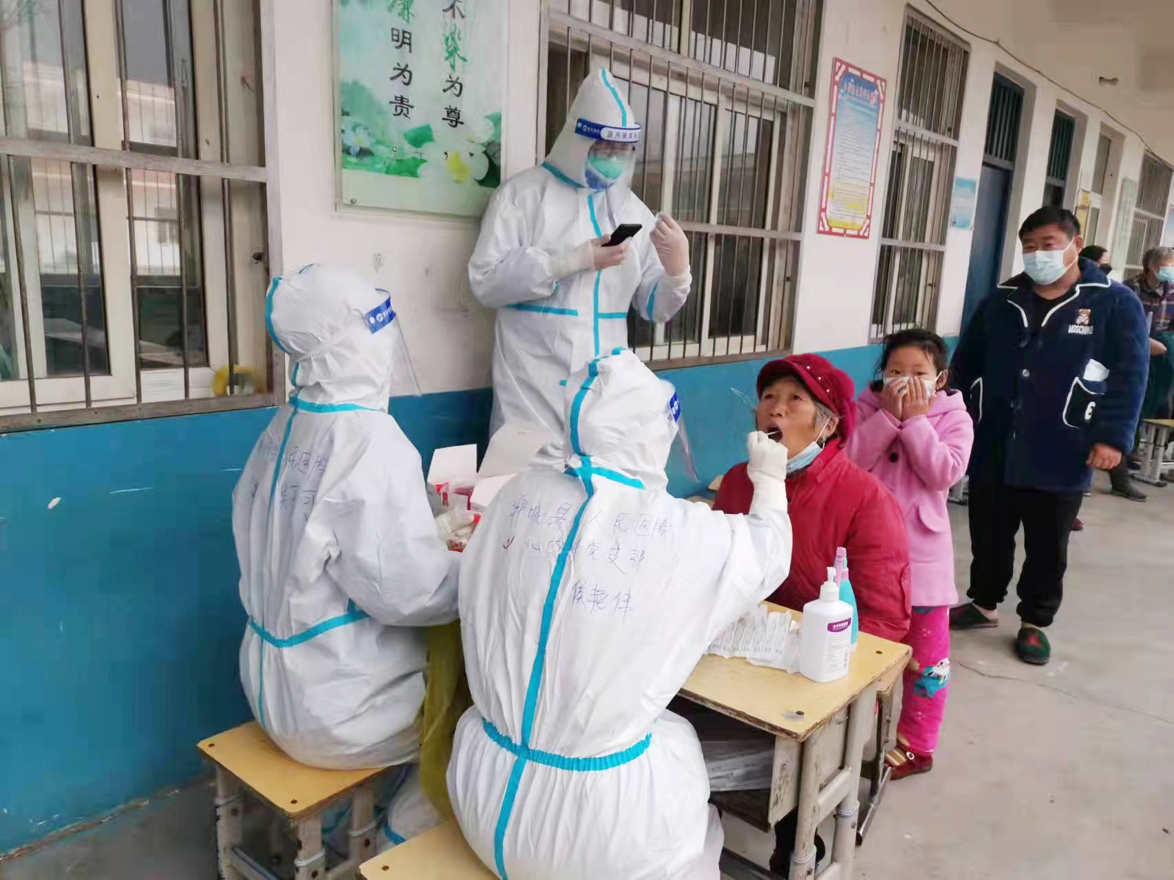 2022年3月23日,太康疫情形勢(shì)嚴(yán)峻,為響應(yīng)縣委、縣政府號(hào)召,醫(yī)院火速征集人員前去支援。她毫不猶豫主動(dòng)申請(qǐng)前去支援。在太康支援期間,她每天入戶為封控區(qū)村民采集核酸,從沒有抱怨苦和累。在采集任務(wù)結(jié)束后,作為第八小組組長(zhǎng),侯艷偉還帶領(lǐng)著她的組員利用短暫的休息時(shí)間,為當(dāng)?shù)氐拇迕窦皩W(xué)生培訓(xùn)七步洗手法,并教給他們一些抗疫小知識(shí),受到了當(dāng)?shù)厝罕姷囊恢驴滟潯?/p>