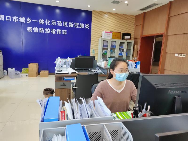 5月4日上午,宋潔霞和同事們像往常一樣來到單位開始上班,辦公桌上擺放著各式各樣的文件,除了日常對疫情防控公文進行處理外,她還負責綜合協(xié)調,做好信息的上傳下達工作。困了就以桌椅為床,長期久坐讓她下肢血液流通不暢,身體承受病痛折磨,但她仍帶病堅持工作,較好完成領導交辦的各項任務。