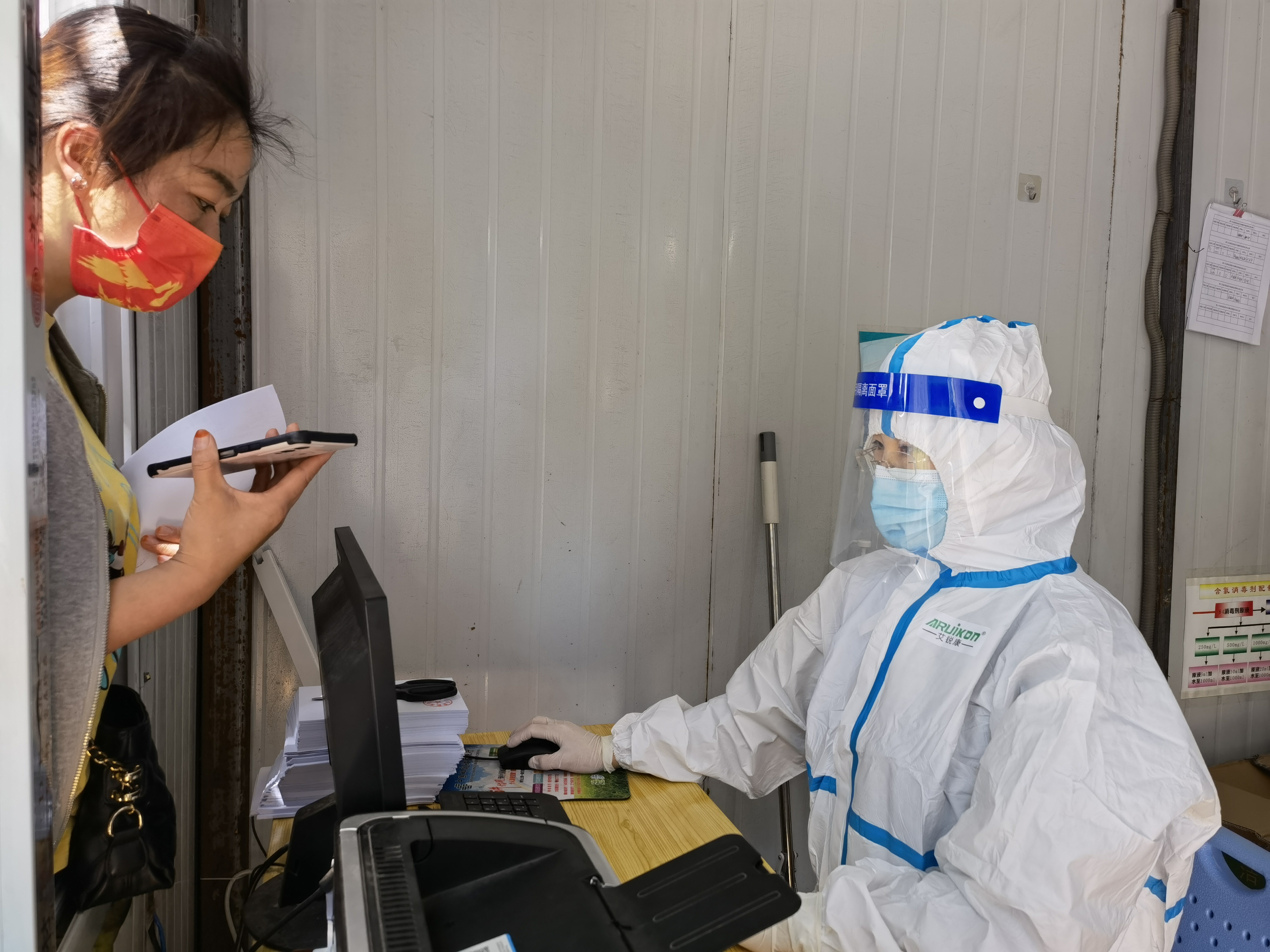 5月4日,記者在周口東新醫(yī)院核酸檢測點見到了全副“武裝”的王琳,她坐在核酸檢測點的核酸檢測報告打印崗位上,身穿防護服,認真細致為需要幫助的群眾打印報告。“大到車輛安排,小到口罩發(fā)放、體溫計調配等防護物資保障都要協(xié)調統(tǒng)籌,一刻也不能停歇,我就想著別有什么地方落下了。安排好一切后,我回到醫(yī)院,同事們都前往全員核酸檢測一線了,這里人手不太足,我頂上。做好后勤保障工作,解決一線醫(yī)護人員的后顧之憂是我的責任和義務?!蓖趿照f。