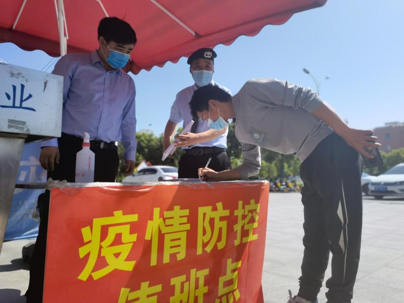 姬祥(左一)在疫情防控值班點
