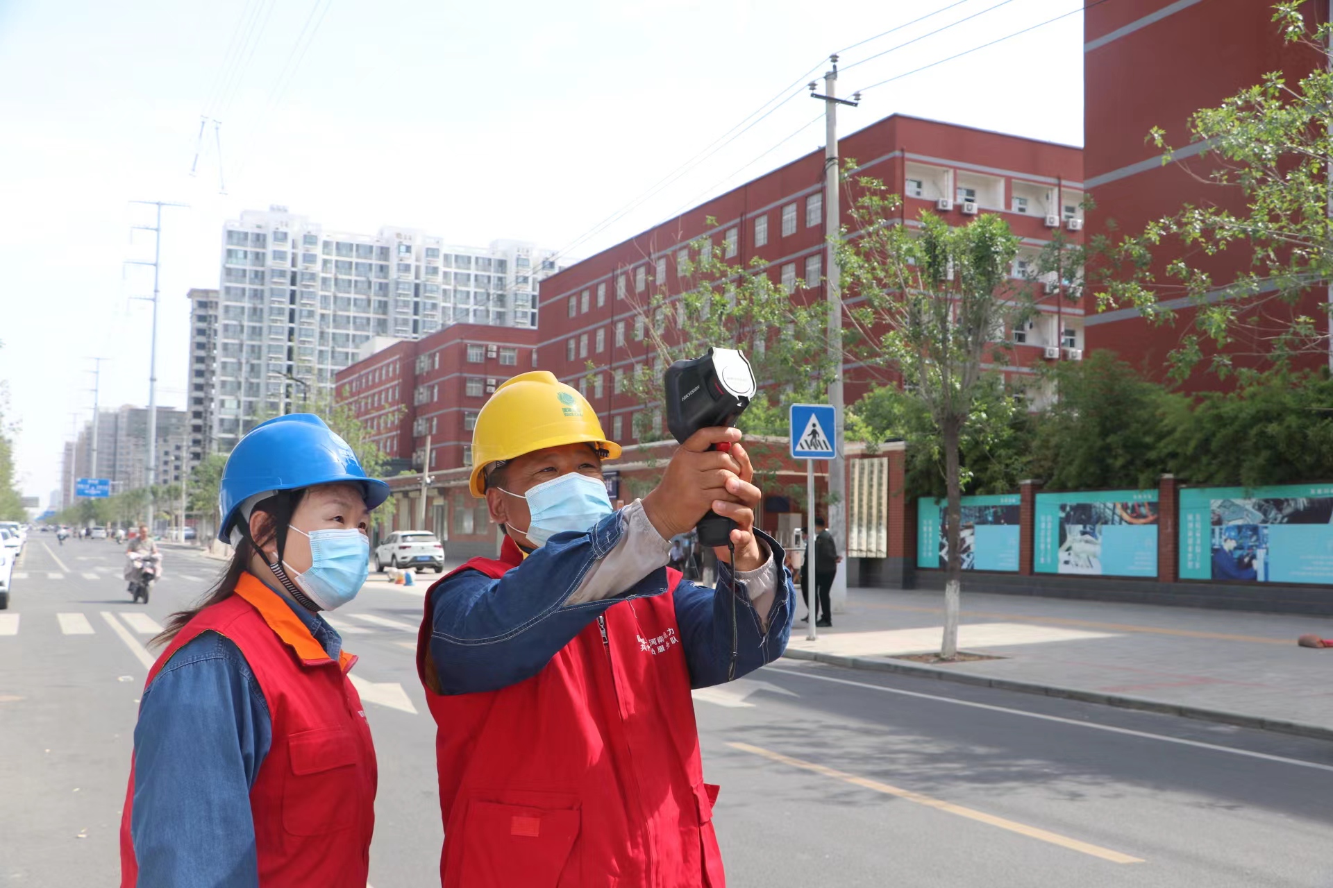 圖為焦裕祿共產(chǎn)黨員服務(wù)隊(duì)工作人員對考點(diǎn)周圍線路進(jìn)行測溫