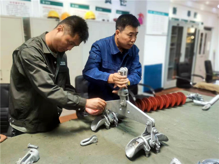 為把學習落到實處,提高班組成員主動學習的積極性,在當日的學習中,經(jīng)驗豐富的老師傅還手把手地帶領青年員工對金具進行現(xiàn)場組裝。他們積極討論,相互切磋,取長補短。