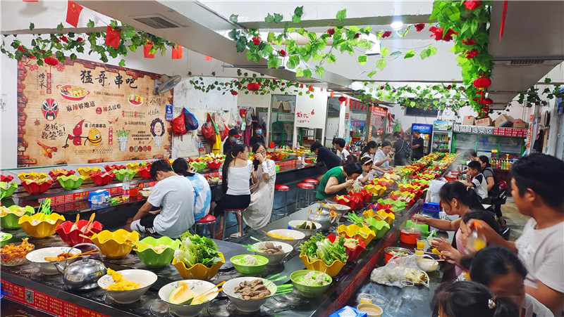 7月22日,周五。傍晚時(shí)分,一場(chǎng)暴雨如約而至,給燥熱的天氣帶來(lái)絲絲涼意。位于西華原縣委黨校院內(nèi)的串吧老板李猛從后廚走出,搬把凳子坐在店門口一邊涼快,一邊刷新著手機(jī)天氣預(yù)報(bào)。他得根據(jù)天氣情況估摸一下當(dāng)晚的客流量,以備食材。