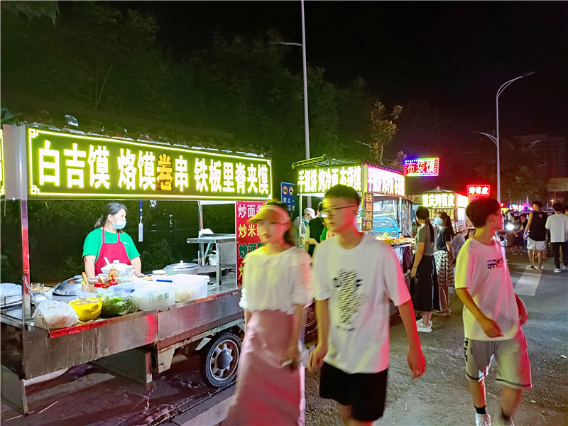 疫情散去,終歸風(fēng)平浪靜。城市夜晚被賦予更斑斕的色彩、更旺盛的生命力,夜消費(fèi)、夜休閑、夜文化在鹿邑市民生活中不可或缺。為進(jìn)一步促進(jìn)“夜經(jīng)濟(jì)”健康發(fā)展,鹿邑縣商務(wù)局、市場(chǎng)監(jiān)管局、城市管理局等有關(guān)部門(mén)審慎包容、精準(zhǔn)施策,堅(jiān)持管理和服務(wù)并重,因地制宜,完善城市便民疏導(dǎo)點(diǎn)經(jīng)營(yíng)秩序,建立臨街餐飲店、夜市小吃外擺準(zhǔn)入機(jī)制。該縣城區(qū)原有8個(gè)便民疏導(dǎo)點(diǎn),經(jīng)過(guò)實(shí)地調(diào)查論證,有關(guān)部門(mén)又將新近自然形成的3個(gè)商販聚集地設(shè)立為便民疏導(dǎo)點(diǎn)。同時(shí),以個(gè)人申請(qǐng)、實(shí)地調(diào)查的方式對(duì)沿街門(mén)店外擺經(jīng)營(yíng)進(jìn)行放開(kāi)。