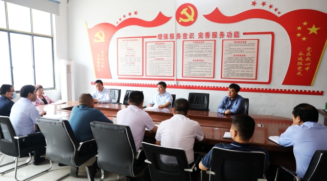 8月16日上午,商水縣委書記孔陽帶領(lǐng)縣“五星”支部創(chuàng)建領(lǐng)導(dǎo)小組相關(guān)成員,對(duì)湯莊鄉(xiāng)西趙橋村“五星”支部創(chuàng)建工作進(jìn)行調(diào)研。