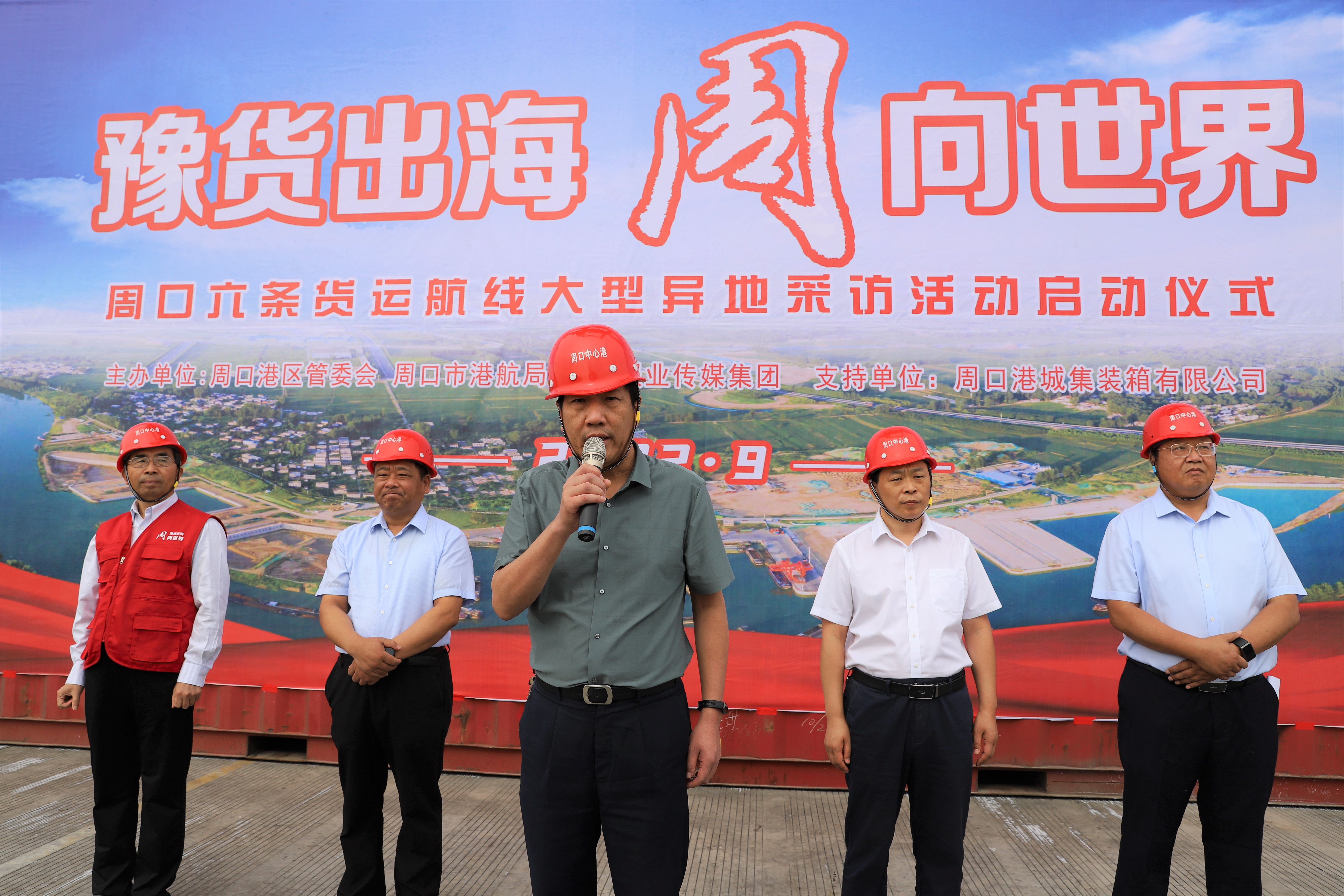 9月21日上午,由周口港區(qū)管委會、周口市港航局、周口報業(yè)傳媒集團、周口港城集裝箱有限公司聯(lián)合組織開展的豫貨出海 “周”向世界——周口六條貨運集裝箱航線大型異地采訪活動在周口中心港碼頭正式啟動。