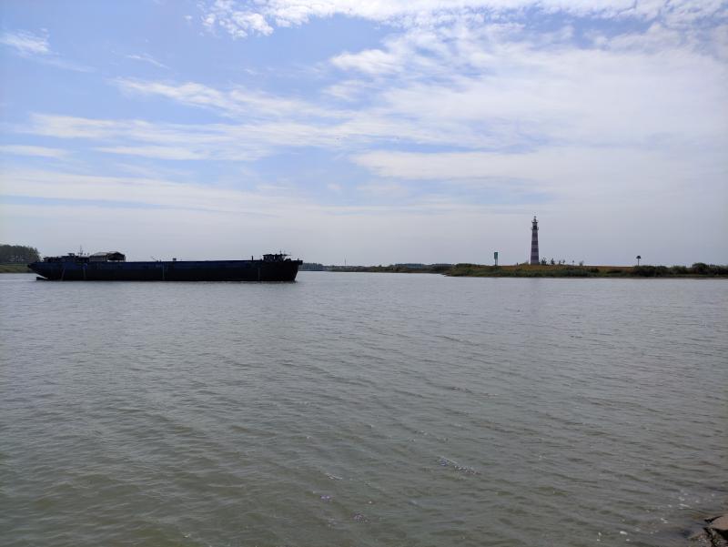 岸上已無往昔的喧囂,水上卻更加繁忙,曾經(jīng)在沫河口畔穿梭的一兩丈長的小木船、水泥船如今都換成了千噸級貨輪。沫河口上游潁上船閘的數(shù)據(jù)顯示,每天有50艘左右的千噸級船舶經(jīng)過沫河口往返于沙潁河、淮河之間,展現(xiàn)著周口的航運(yùn)復(fù)興。采訪組一行在沫河口逗留一個(gè)多小時(shí)的時(shí)間段,就有6艘貨輪從淮河逆流而上,上行駛?cè)肷碀}河,一艘拖船拖著7艘貨輪,浩浩蕩蕩地從沙潁河駛?cè)牖春樱樍鞫隆?