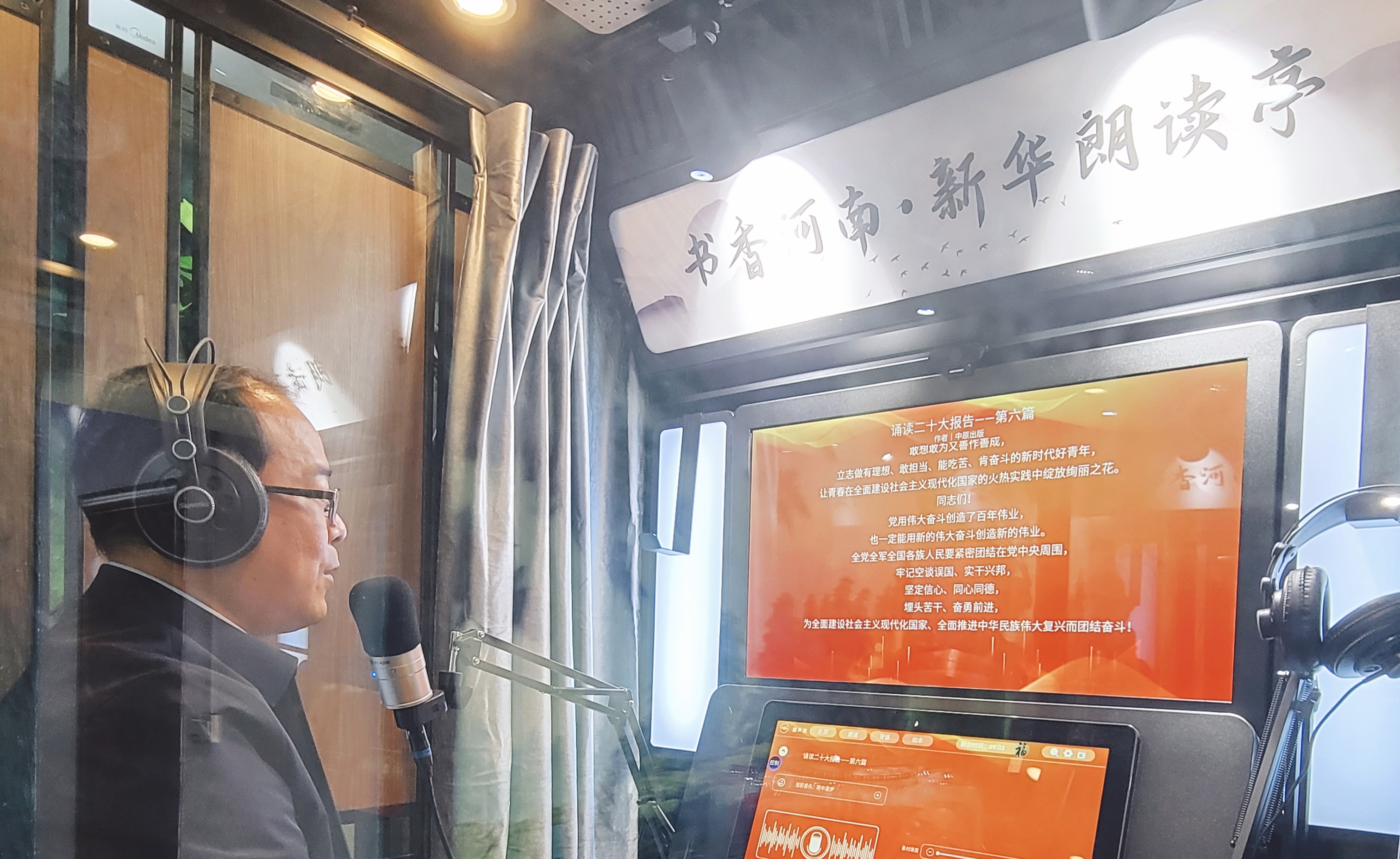 據(jù)了解,此次誦讀活動時間為10月26日至11月30日?;顒又饕x了黨的二十大報告中十五個章節(jié)的部分文字作為誦讀素材,誦讀者進入朗讀亭后,只要打開手機進行微信登錄,就可以選擇喜歡的片段進行誦讀,最后還可以在結(jié)尾處針對誦讀內(nèi)容發(fā)表切身感悟。