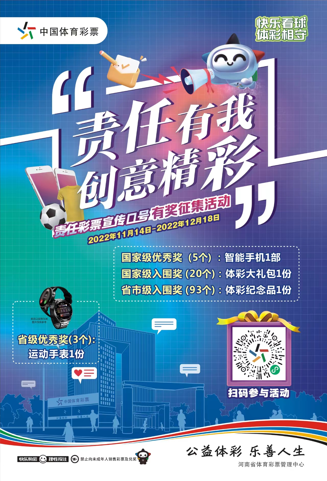 2.國家級入圍獎20個,體彩大禮包1份;